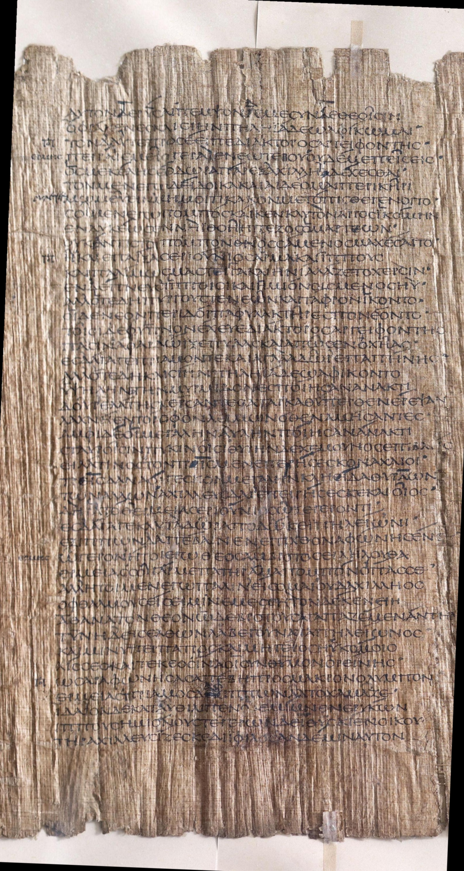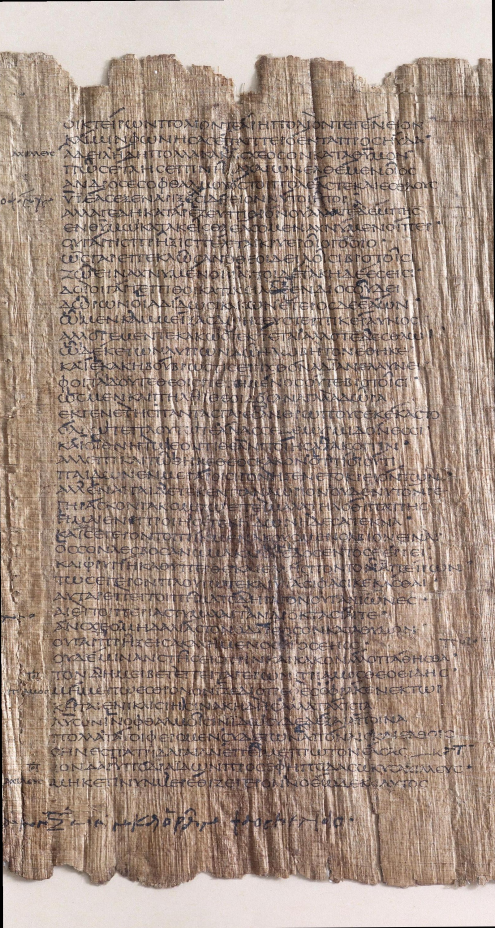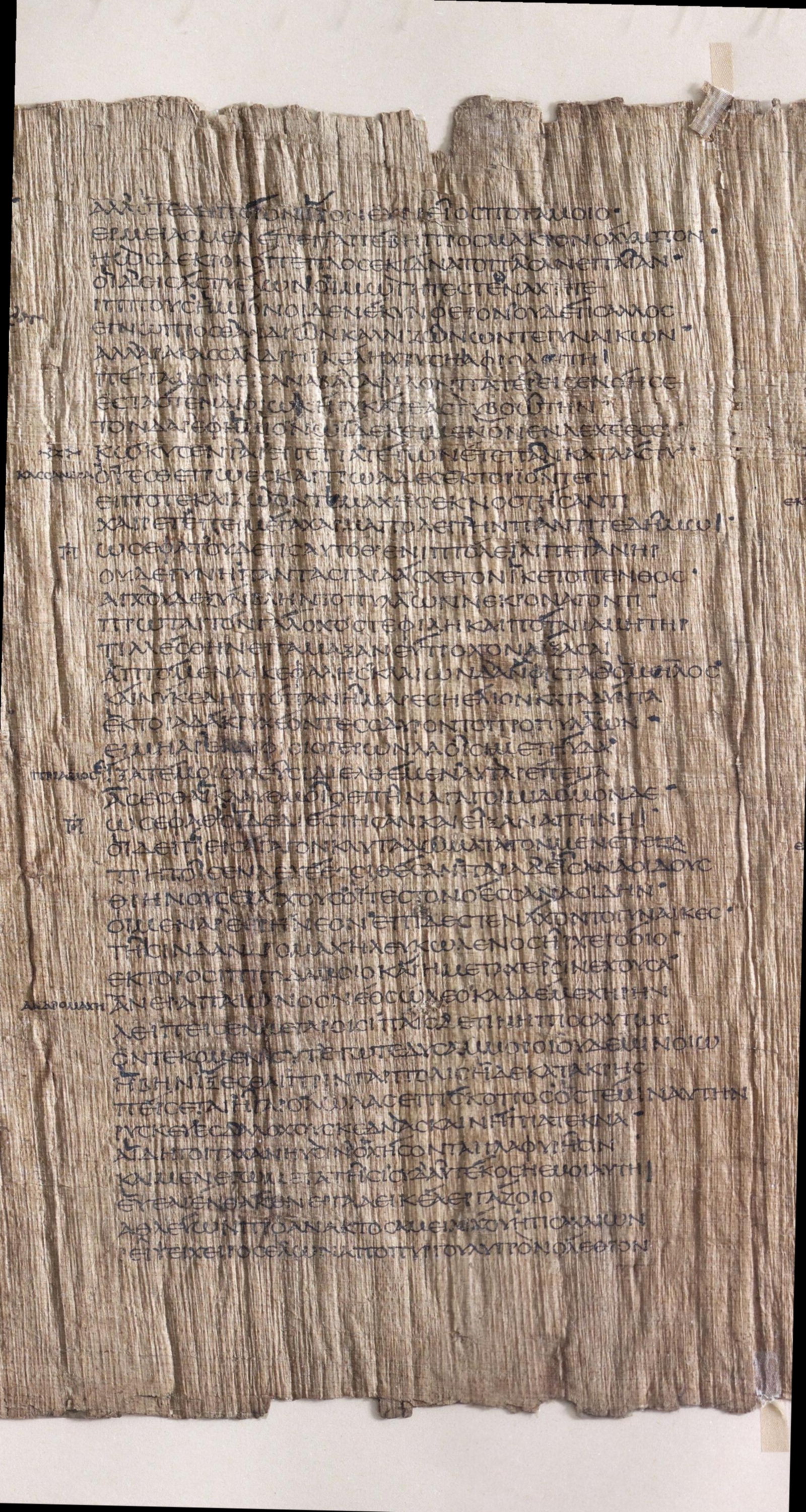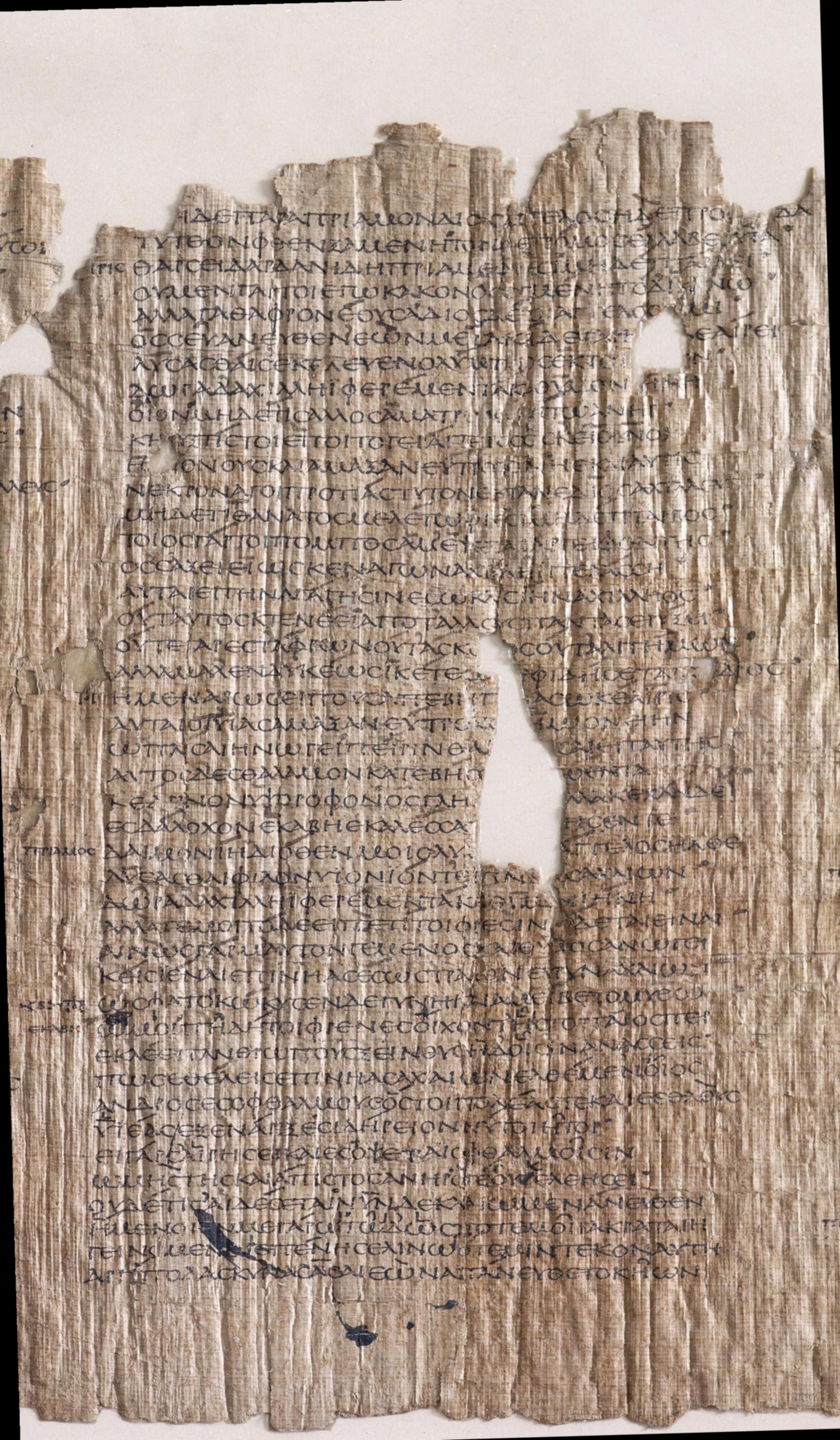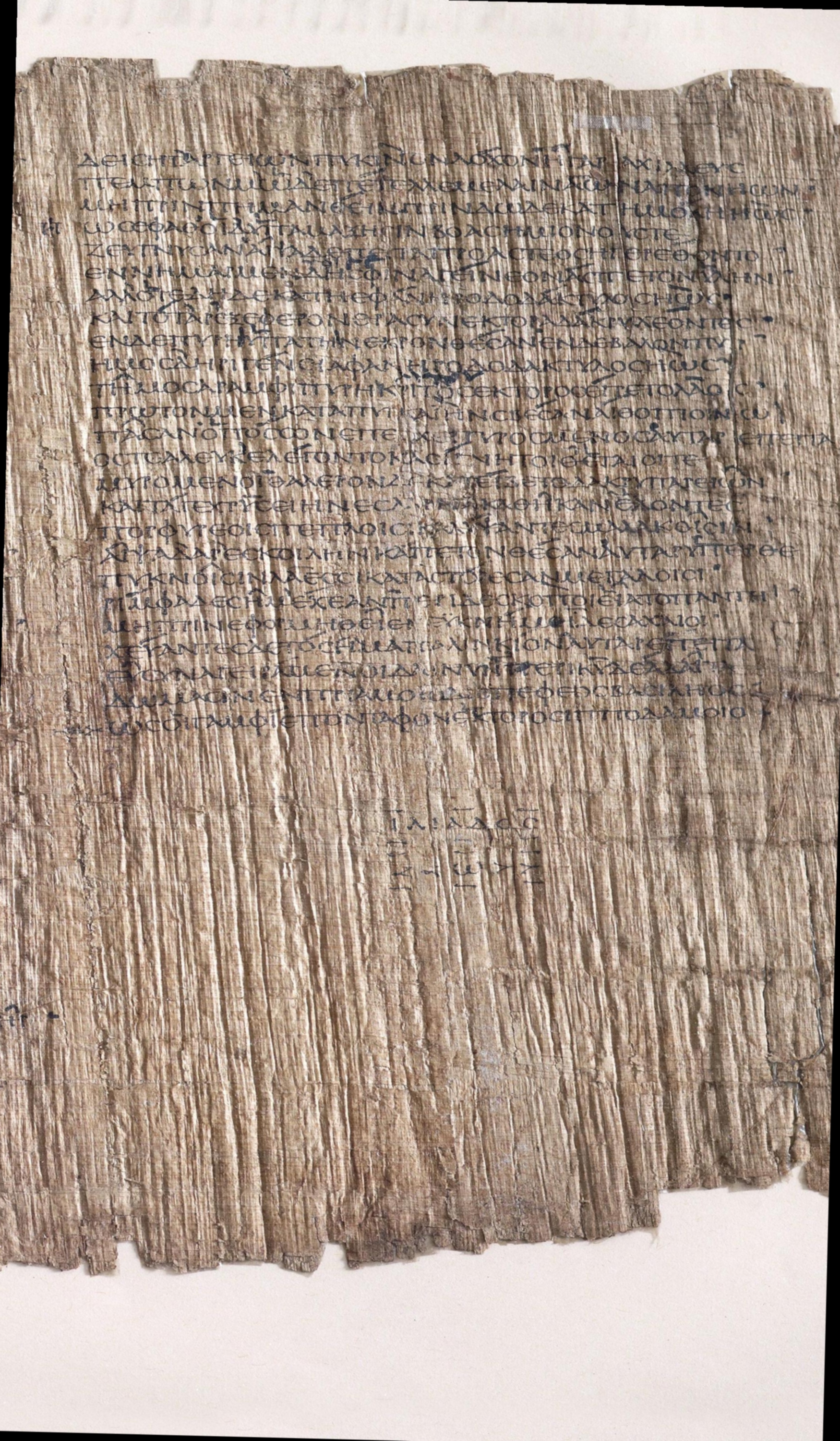 Papyrus 114, also known as the Bankes Homer (P. Lond. Lit. 28) , is a single roll of papyrus containing lines 127 to 884 of Book 24 of Homer's Iliad. The fragment dates to approximately 150 A.D., just under 800 years after the Iliad was first written down by someone (almost certainly not named Homer) from the Bigas Peninsula on the north-western coast of modern day Turkey. The provenance of the papyrus begins in the island of Elephantine , part of the city of Aswan, in the Upper Nile in Egypt in 1821 where it was purchased from a local dealer by John William Bankes. Before that its history is unknown, though it was likely part of a personal copy of the Iliad belonging to a private citizen in Roman Egypt.Above you can view the papyrus side-by-side with two separate transliterations of the text. In the middle, the transliteration mirrors the presentation of the text in the papyrus itself, using an uncial script without any spacing between words. On the right hand side, the text is presented in the more familiar way, complete with word spacings and accent marks.